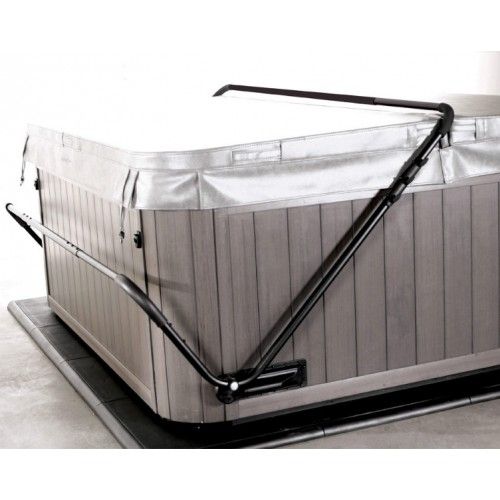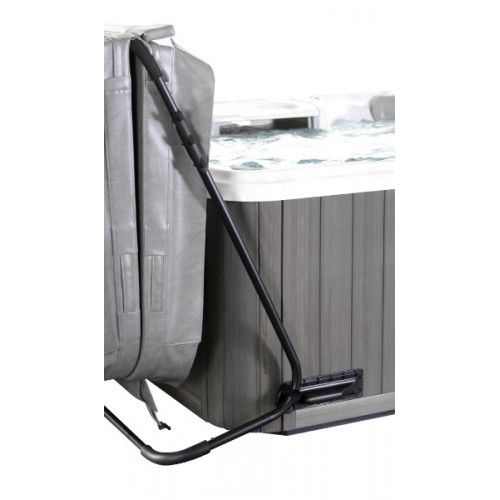 In de CoverMate II hangt de cover lager naast de spa, zoveel mogelijk uit het zicht.
